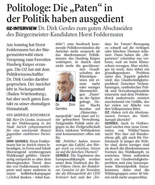 Feddermann wird Auricher Bürgermeister - Kommentar (2019)